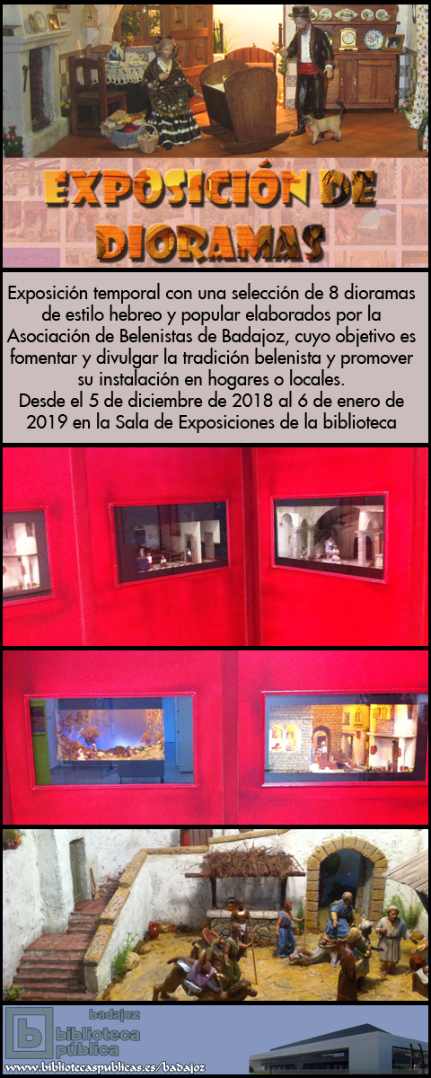 1. Exposición de Dioramas: Del 5 de diciembre de 2018 al 6 de enero de 2019 se expondrá de manera temporal una selección de 8 dioramas de estilo hebreo y popular elaborados por la Asociación de Belenistas de Badajoz.